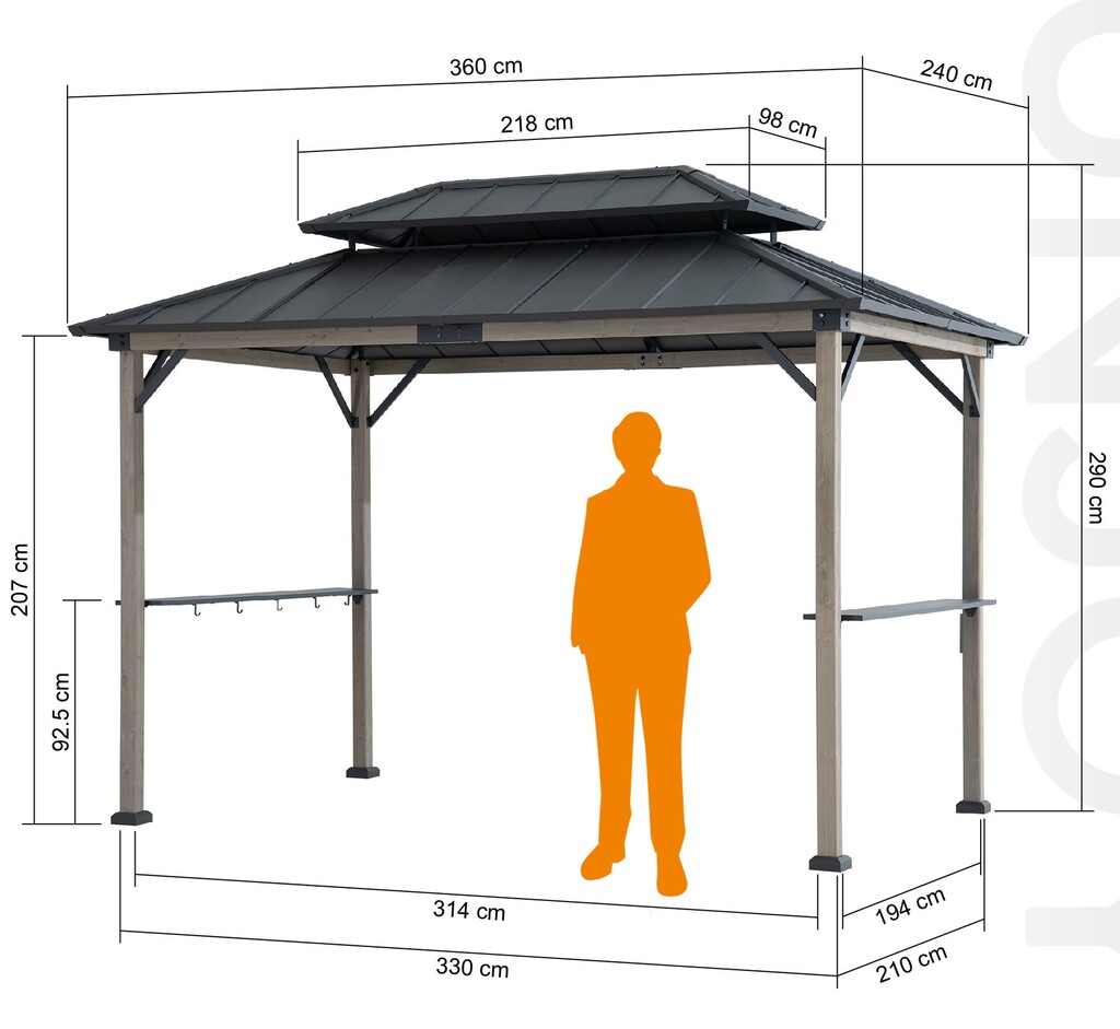• całkowity rozmiar altany ( dachu ) : 240×360 cm