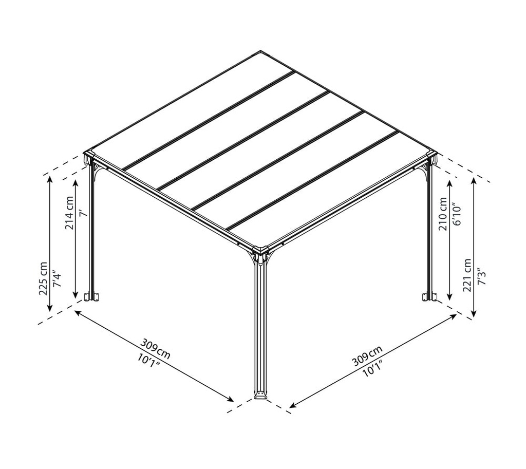 Altana ogrodowa Milano 3×3 m Palram Canopia – odporność na śnieg i deszcz