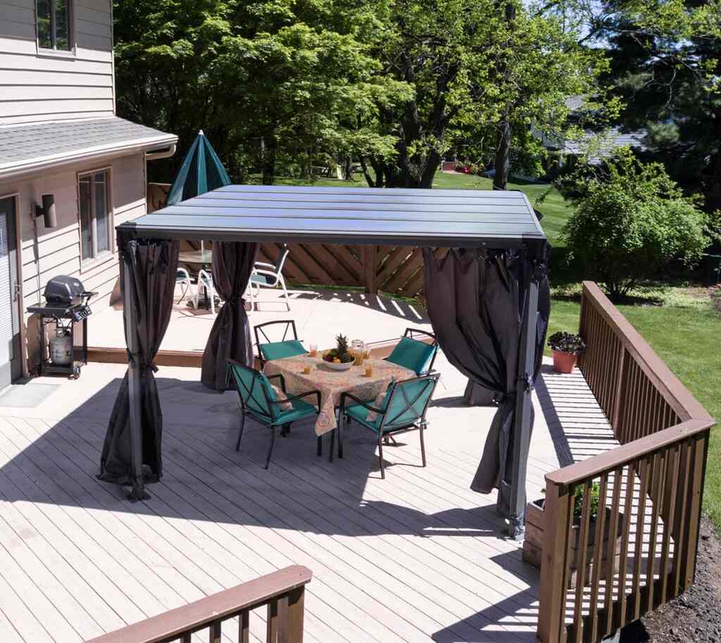 Dzięki możliwości montażu dodatkowych akcesoriów, takich jak zasłony lub moskitiery, pawilon można z łatwością dostosować do indywidualnych potrzeb ( moskitiery i zasłony niedostępne w zestawie ). Zyskasz prywatność, ochronę przed owadami i jeszcze większy komfort podczas letnich wieczorów.