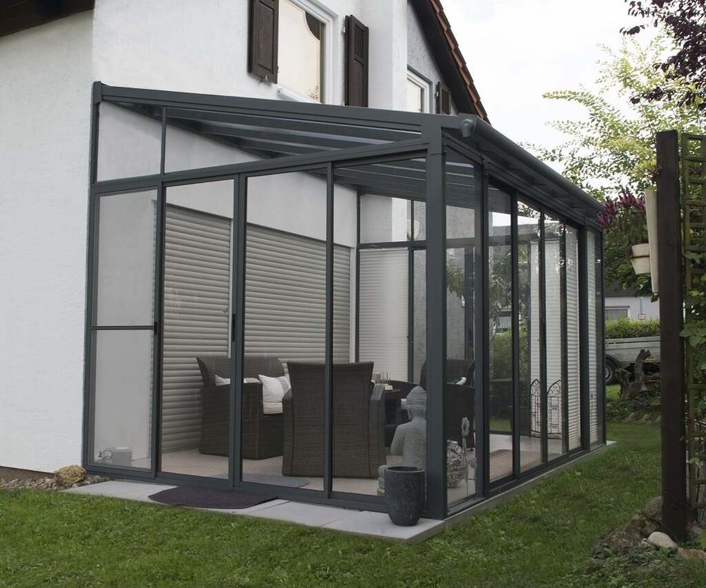 Konstrukcja ogrodu zimowego SanRemo wykonana została z malowanego proszkowo aluminium. To materiał lekki, ale wyjątkowo odporny na korozję i działanie czynników atmosferycznych. Dzięki temu ogród zimowy nie wymaga czasochłonnej konserwacji, a jego wygląd pozostaje nienaganny przez długie lata. Elegancki szary kolor doskonale komponuje się zarówno z nowoczesną architekturą, jak i klasycznymi domami.