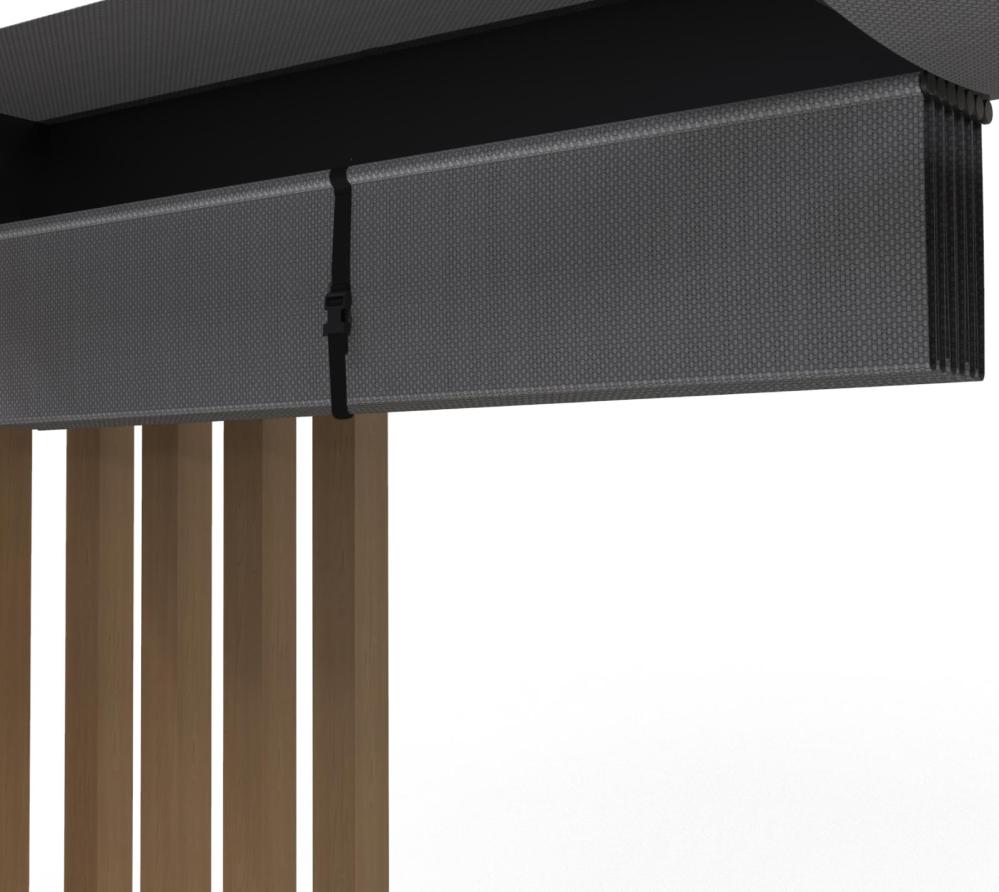Materiał wykonania to PVC-powlekany poliester (Textilene), który jest odporny na wilgoć ( nie jest wodoodporny ) i promieniowanie UV. To sprawia, że pergola świetnie sprawdza się w każdych warunkach.