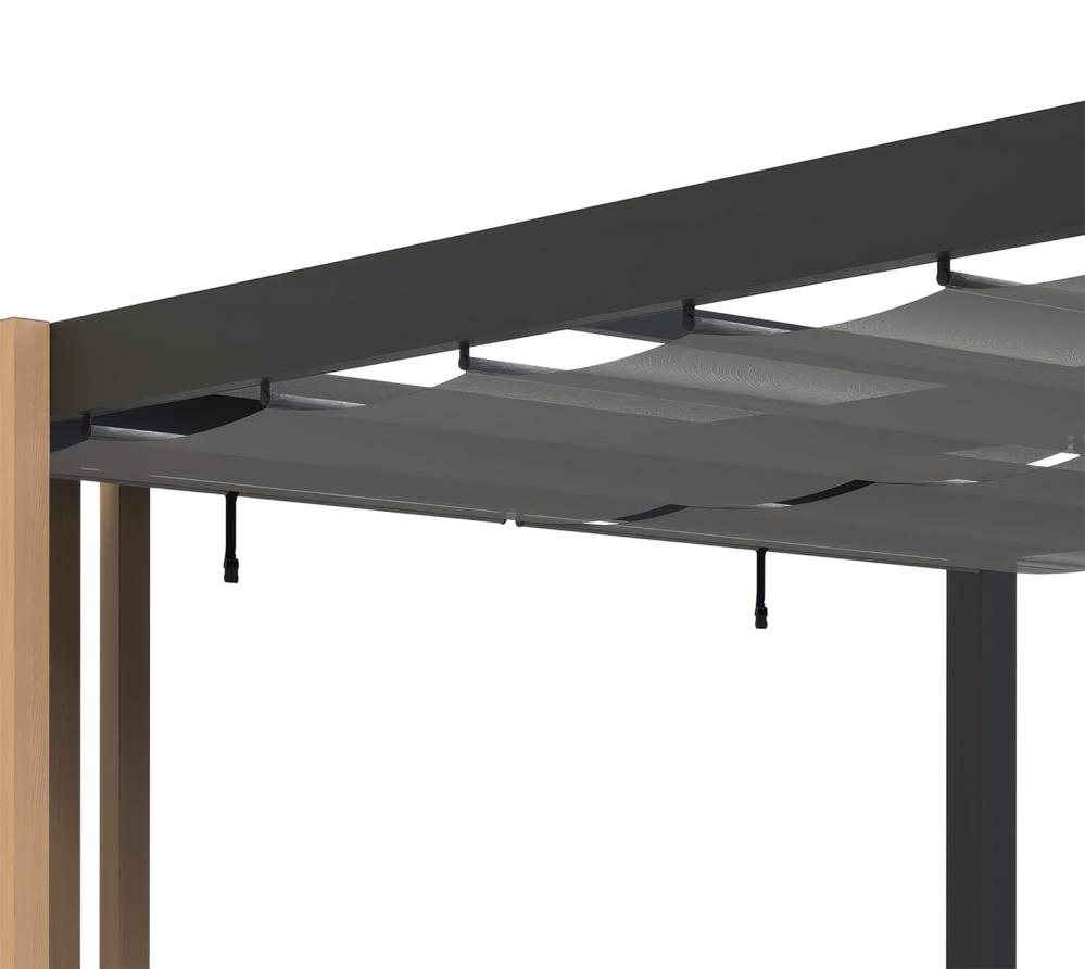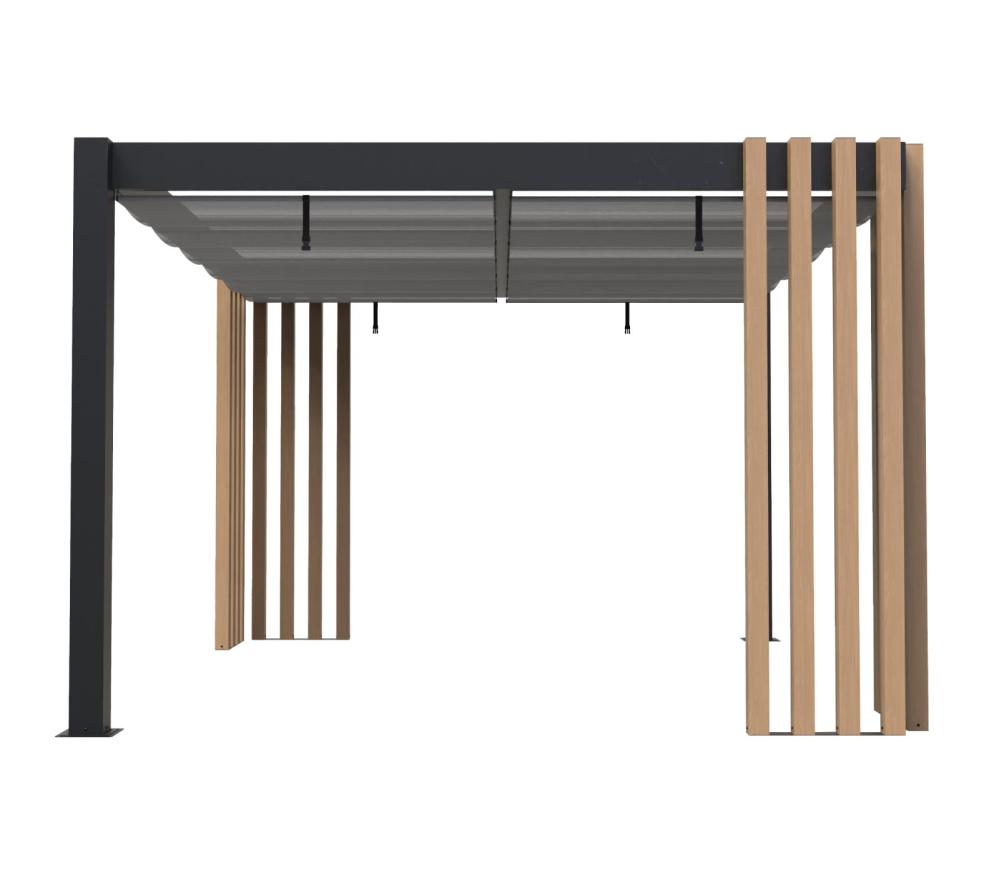 Pergola Lito oferuje wyjątkową funkcjonalność. Zastosowano dwa niezależnie rozsuwane żagle przeciwsłoneczne, które pozwalają regulować ilość światła.