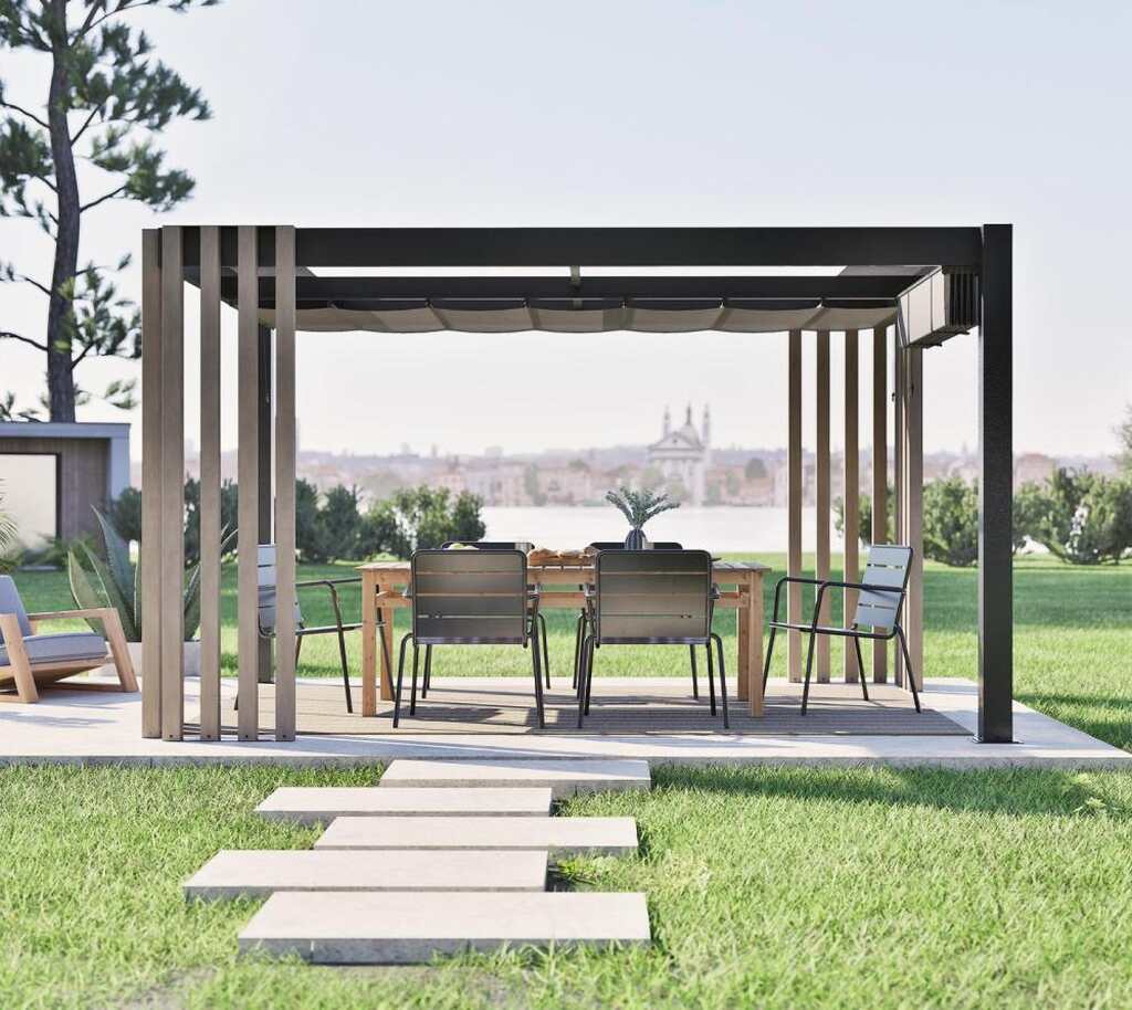 Pergola aluminiowa 3×4 m z rozsuwanym żaglem i designem premium
