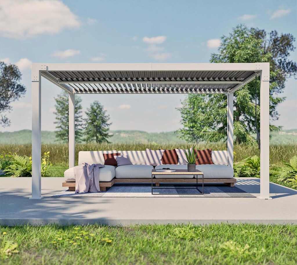 Pergola aluminiowa Sojag Hana 3×4 m z lamelowym dachem w kolorze jasno szarym