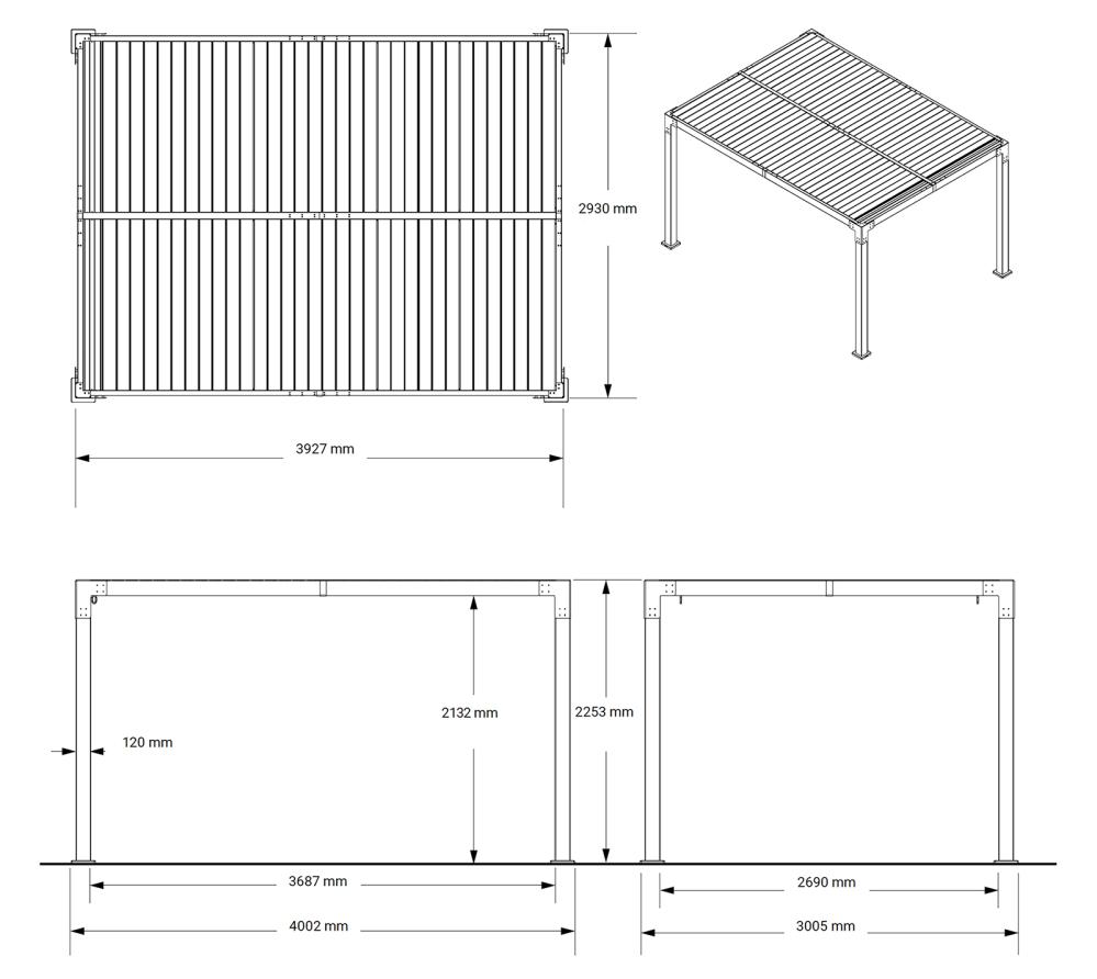 Specyfikacja techniczna – pergola ogrodowa 3×4 Hana Sojag jasny szary: