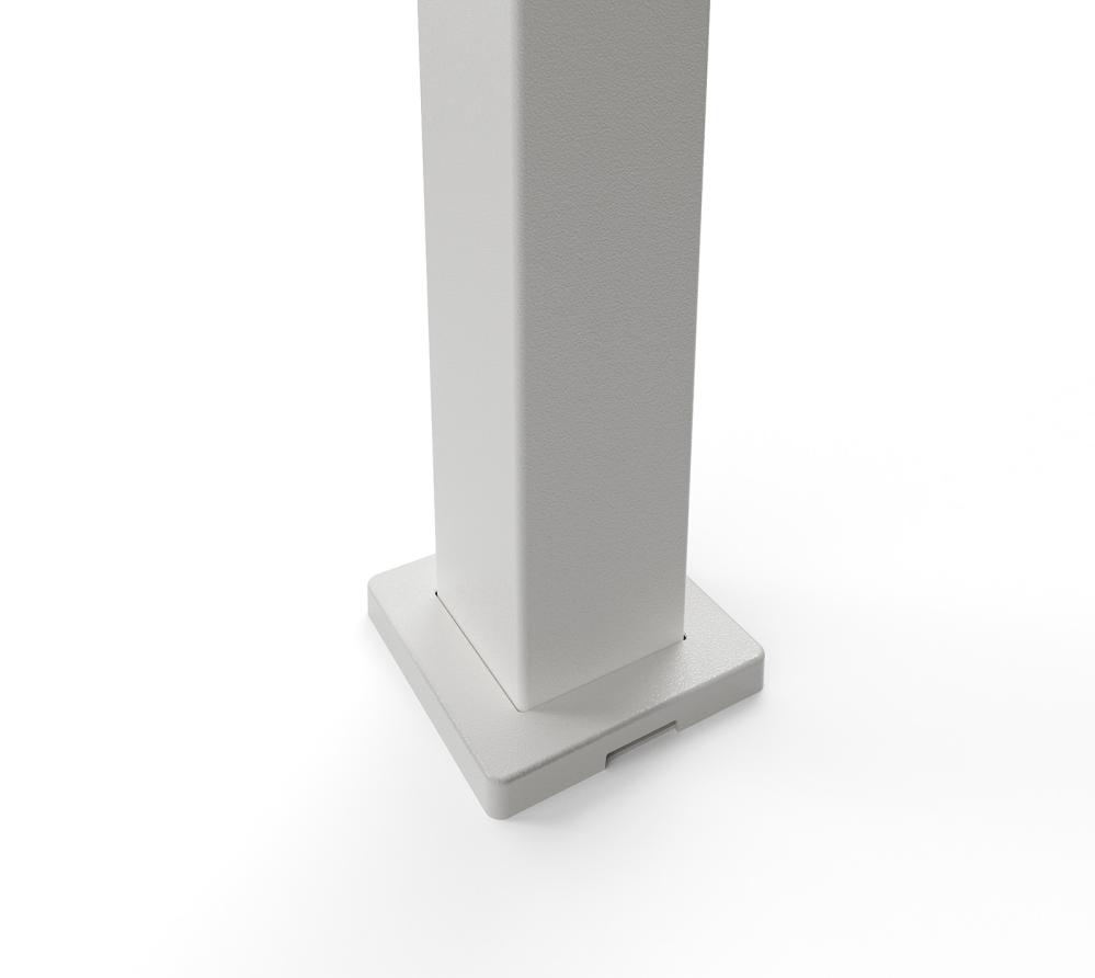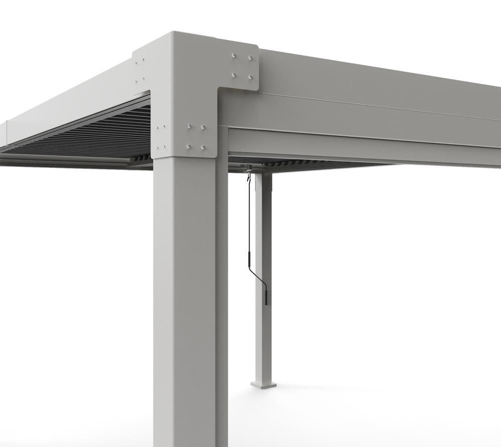 Konstrukcja została wykonana z wytrzymałego aluminium, a masywne słupy 12×12 cm zapewniają stabilność nawet przy zmiennych warunkach pogodowych. Całość pokrywa profesjonalna powłoka proszkowa Akzo Nobel Interpon, która chroni przed korozją i zachowuje estetykę na lata.