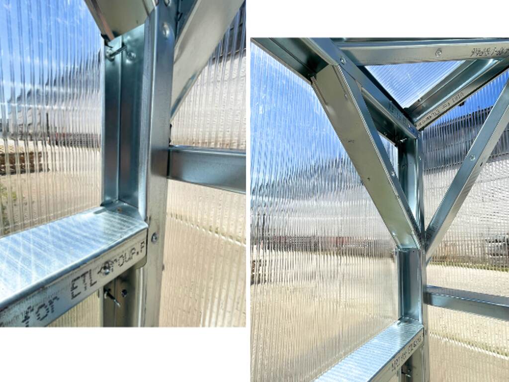 Fundamentem tej szklarni jest przemyślana technologia. Konstrukcję wykonano z profili stalowych LSCK typu C o grubości 0,8 mm, tworzonych w systemie LSTS. To rozwiązanie łączy lekkość z ponadprzeciętną wytrzymałością.