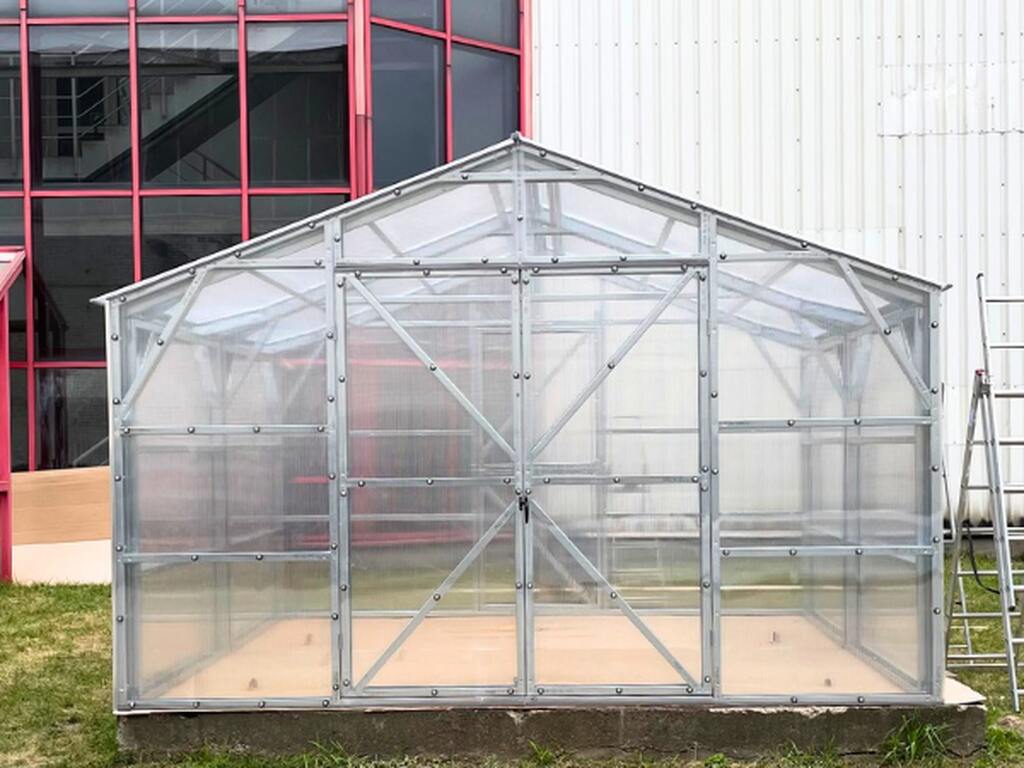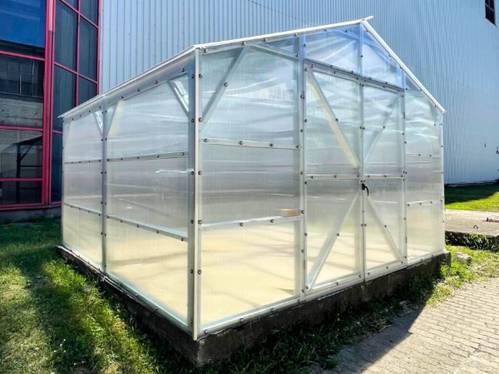 Montaż przebiega sprawnie przy udziale minimum dwóch osób. Całość zajmuje około 11–14 godzin pracy. Szklarnię należy ustawić na wypoziomowanym podłożu. Dla maksymalnej trwałości rekomendujemy fundament z bloczków lub wylewki oraz mocowanie kątownikami.