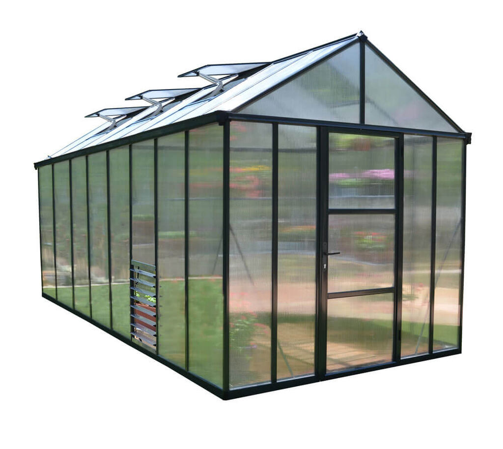 Jeśli marzysz o ogrodzie pełnym zdrowych warzyw, ziół i kwiatów, które rosną bez względu na pogodę, szklarnia z poliwęglanu Glory 2,45 × 4,83 m Palram-Canopia spełni wszystkie Twoje oczekiwania. To nie tylko funkcjonalna konstrukcja, ale również elegancki element aranżacji ogrodu. Dzięki przemyślanemu projektowi i solidnym materiałom zapewnia optymalne warunki do uprawy przez cały rok 🌞❄️.
