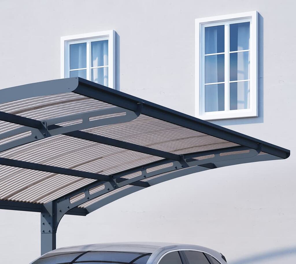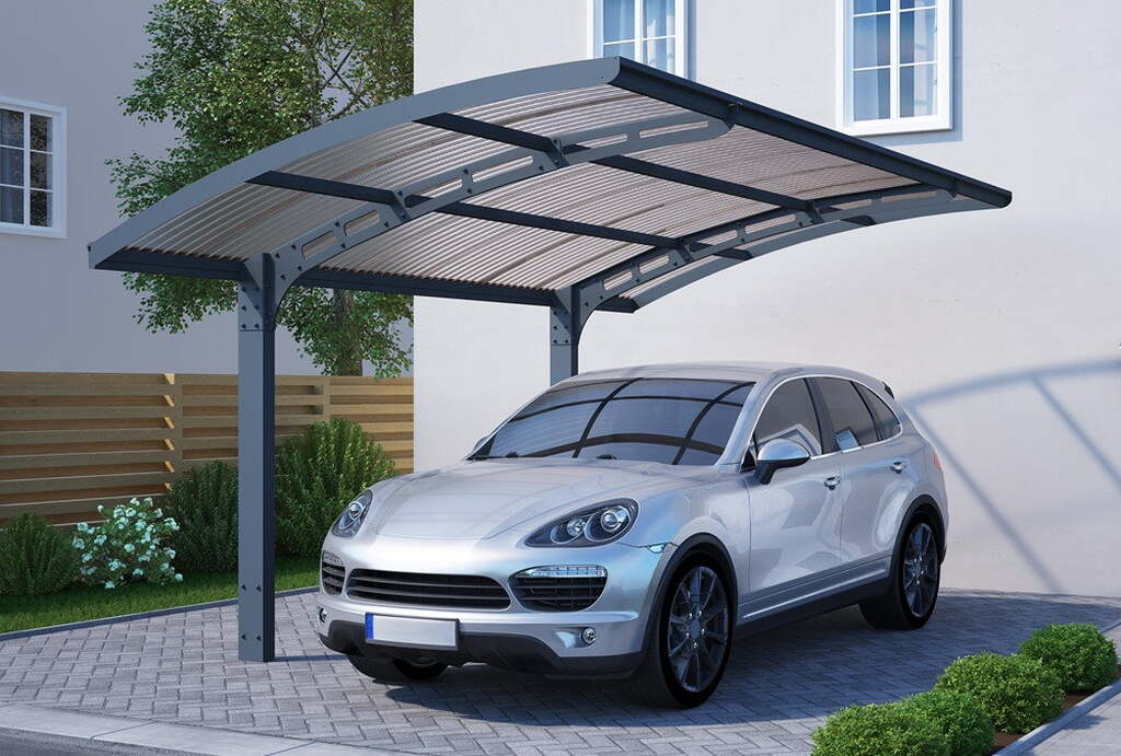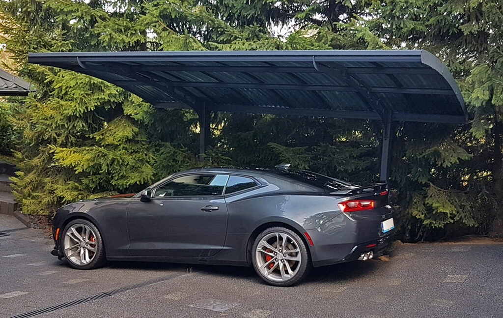 Dzięki minimalistycznemu designowi konstrukcja doskonale komponuje się zarówno z nowoczesną, jak i klasyczną architekturą. Smukły profil i zaokrąglony dach nadają całości lekkości, a przy tym sprawiają, że wiata staje się wyjątkową ozdobą posesji.
